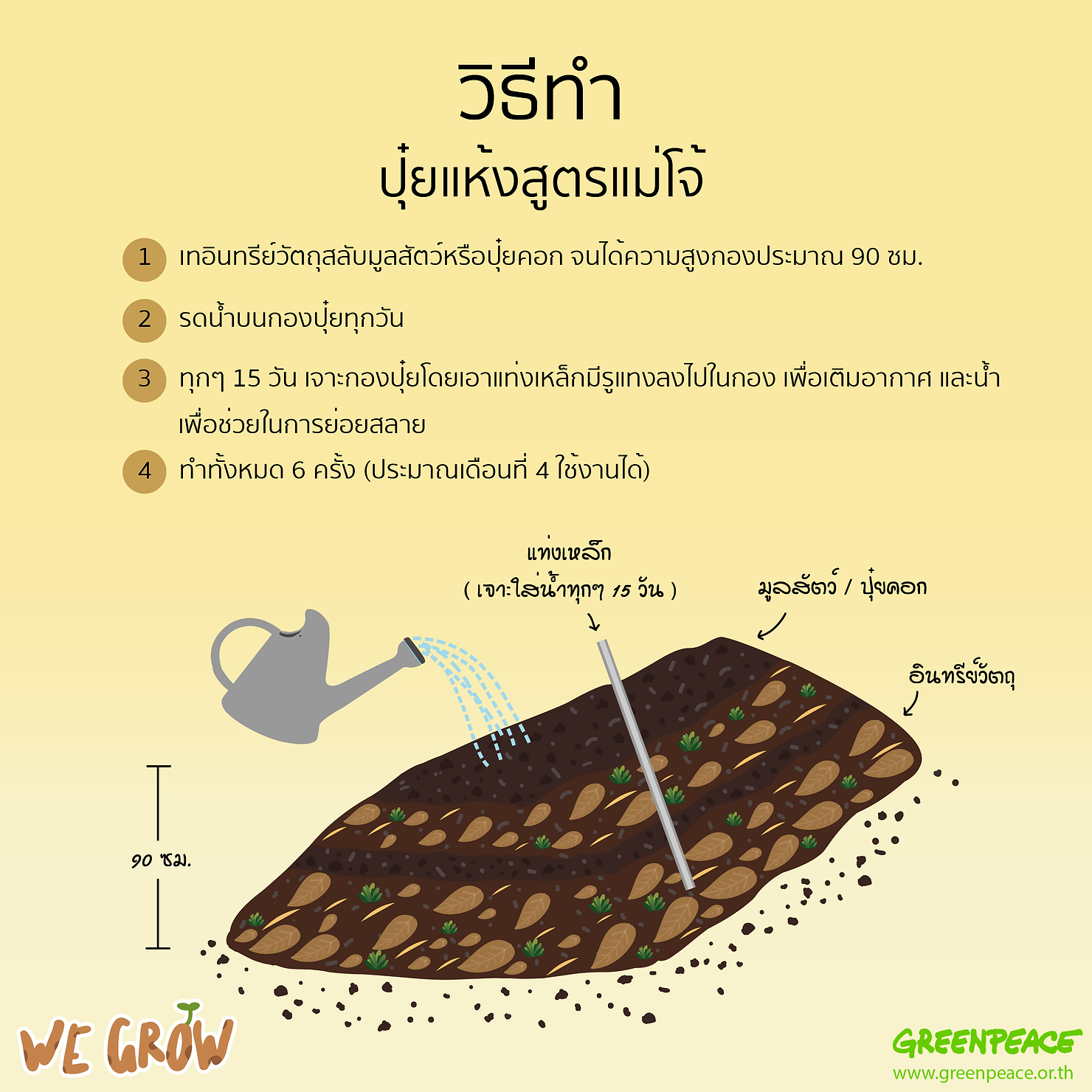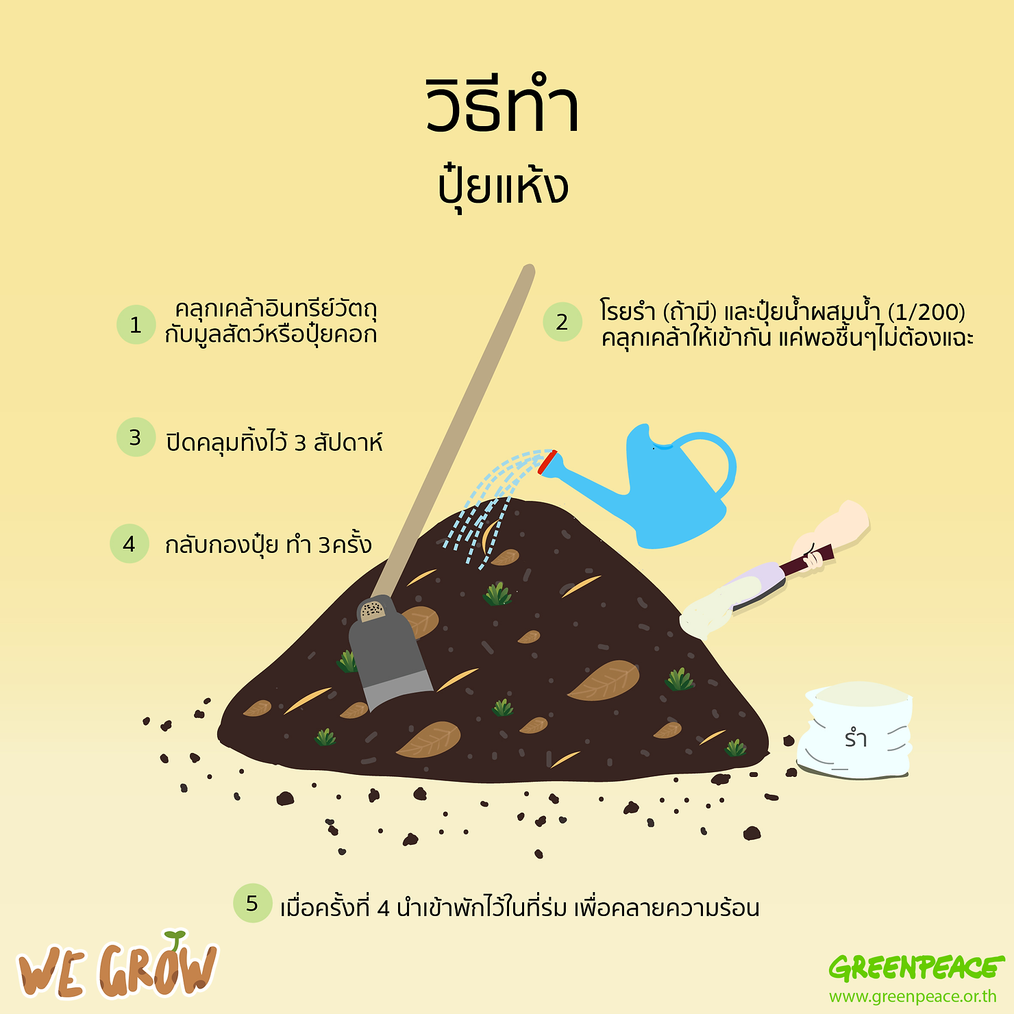 2.โรยรำ (ถ้ามี) และปุ๋ยน้ำผสมน้ำ (1/200) คลุกเคล้าให้เข้ากัน แค่พอชื้นๆไม่ต้องแฉะ 3.ปิดคลุมทิ้งไว้ 3 สัปดาห์