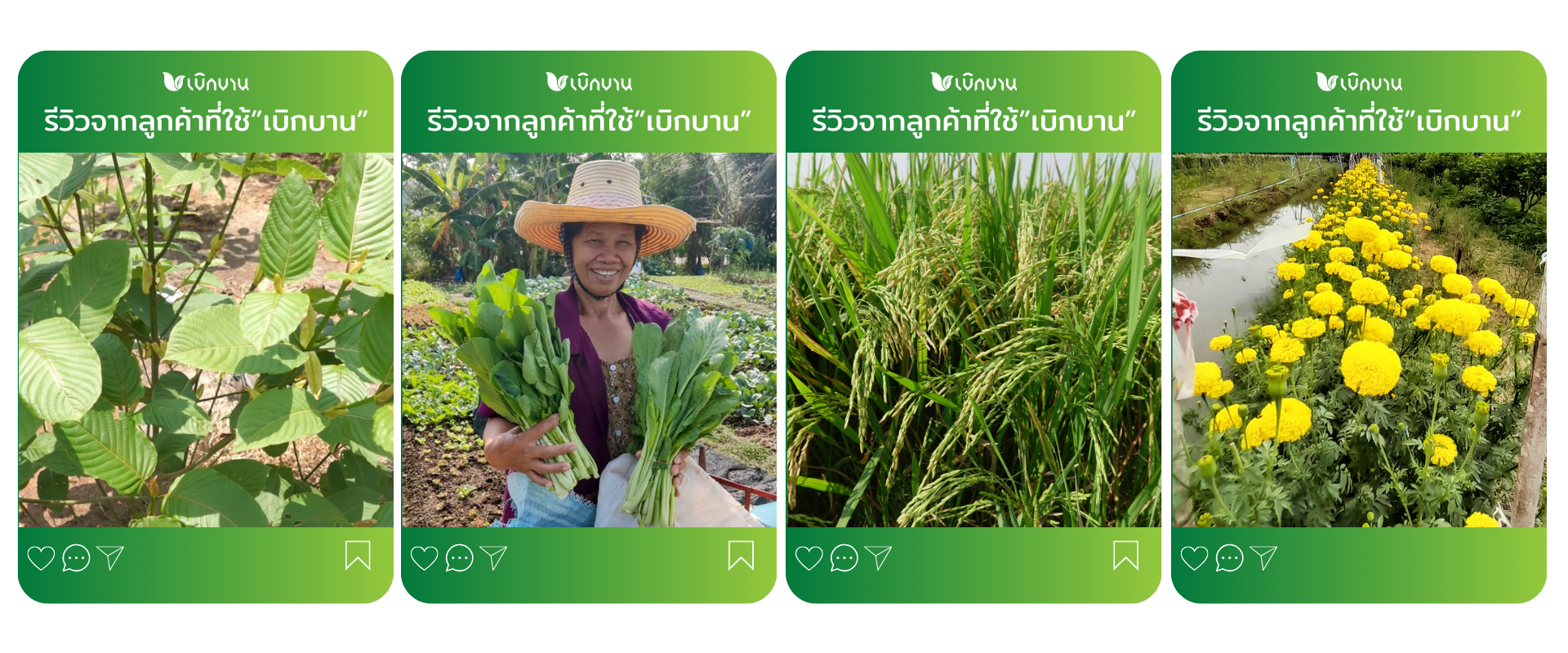 ผลผลิตไม่งอกเงย ได้มาลองใช้เบิกบาน รู้สึกว่าดีขึ้น ใบเขียวตั้งแต่แรก